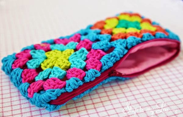 Necessaire com quadradinhos de crochê ( granny squares ) com passo a passo